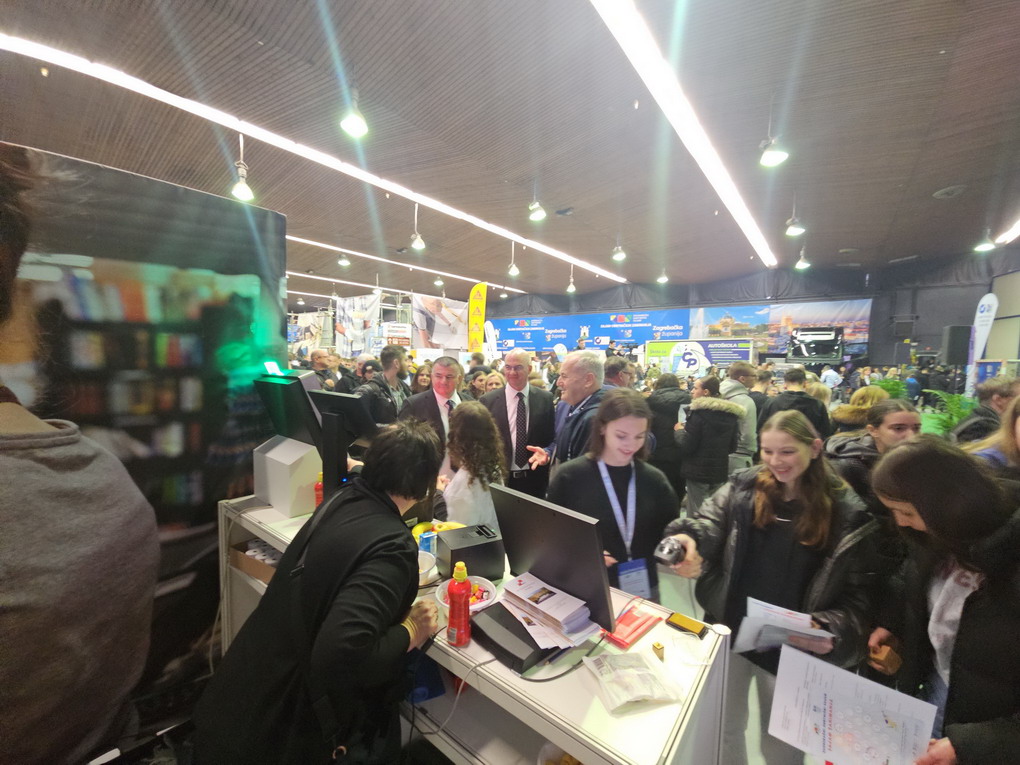Na sajmu je sudjelovala i naša škola, a naši učenici s ponosom su je predstavljali te pokazali interes, motivaciju i razinu kompetencija koje se stječu kroz obrazovanje. Kroz izravan kontakt s posjetiteljima, naši učenici na primjeren i profesionalan način predstavili su mogućnosti obrazovanja i razvoja u trgovačkoj struci.