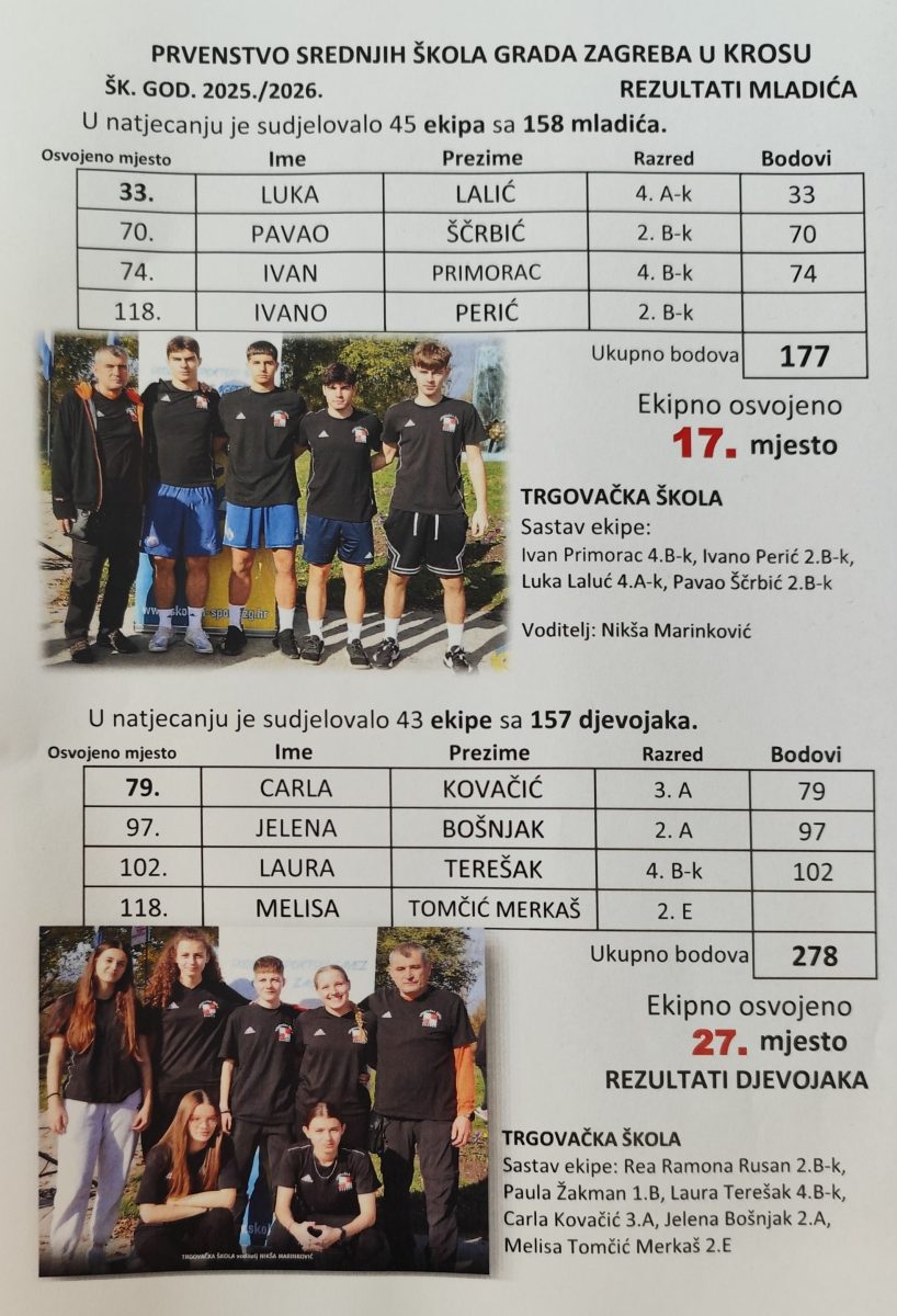 Naša škola zauzela je 17. mjesto u muškoj i 27. mjesto u ženskoj konkurenciji. Najbolji pojedinačni rezultat ostvario je Luka Lalić, 33. mjesto.