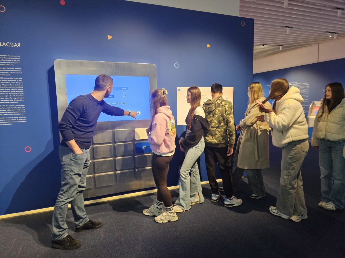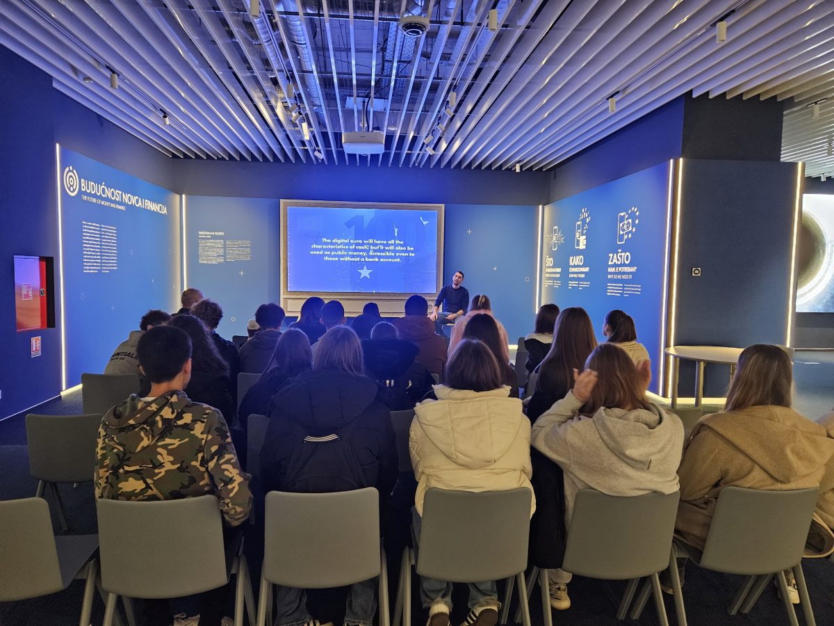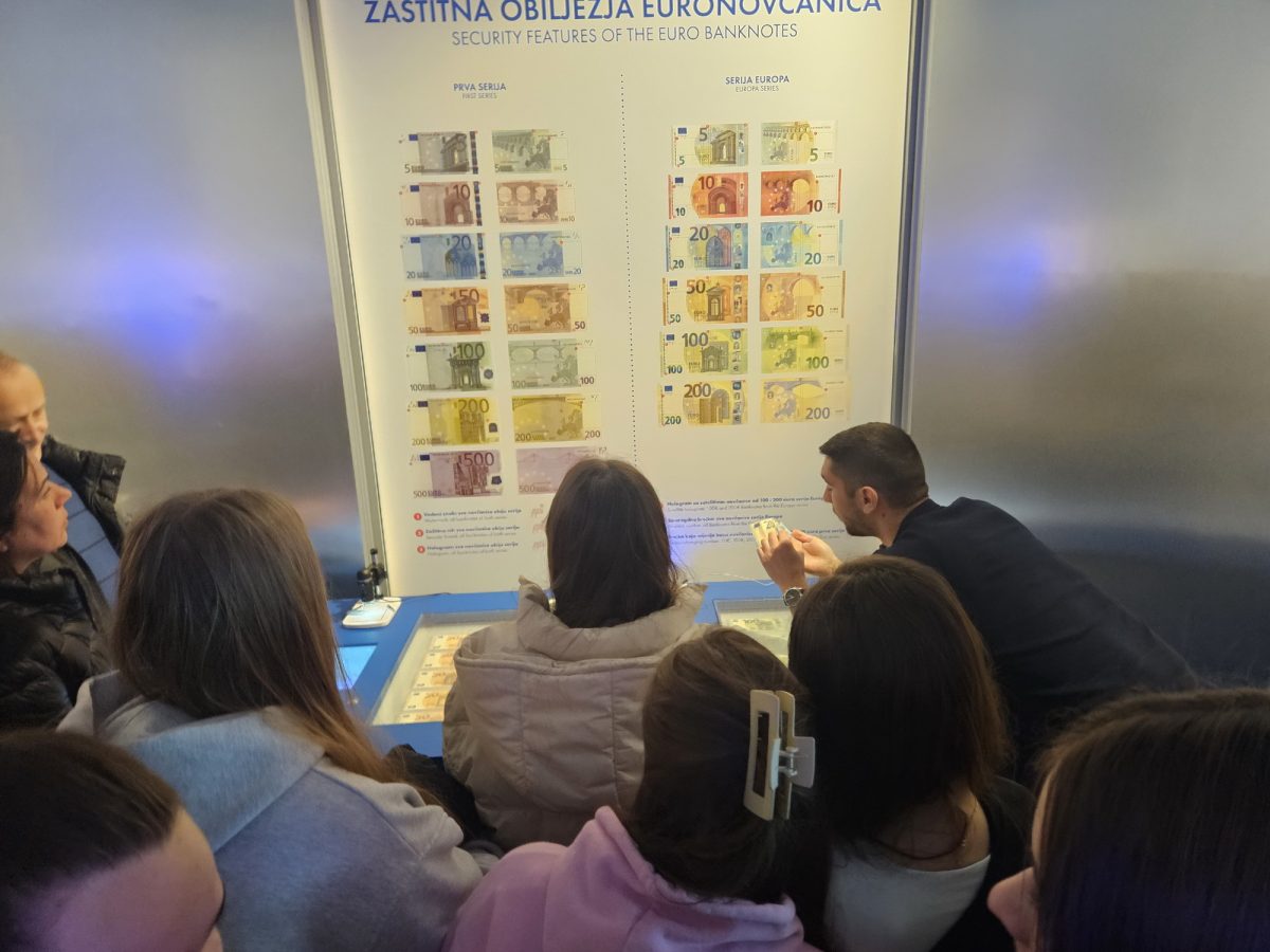 Posjet učenika Trgovačke škole organiziran je u okviru modula Uvod u osobne financije kako bi se teorijsko znanje povezalo s praktičnim, svakodnevnim primjerima. Uz stručno vodstvo, na zanimljiv i pristupačan način, učenicima je objašnjen razvoj novca od prvih oblika razmjene do današnjih digitalnih sredstava plaćanja. Također, učenici su imali prilike naučiti više o monetarnoj politici, financijskim krizama, ali načinima prepoznavanja krivotvorenih novčanica.